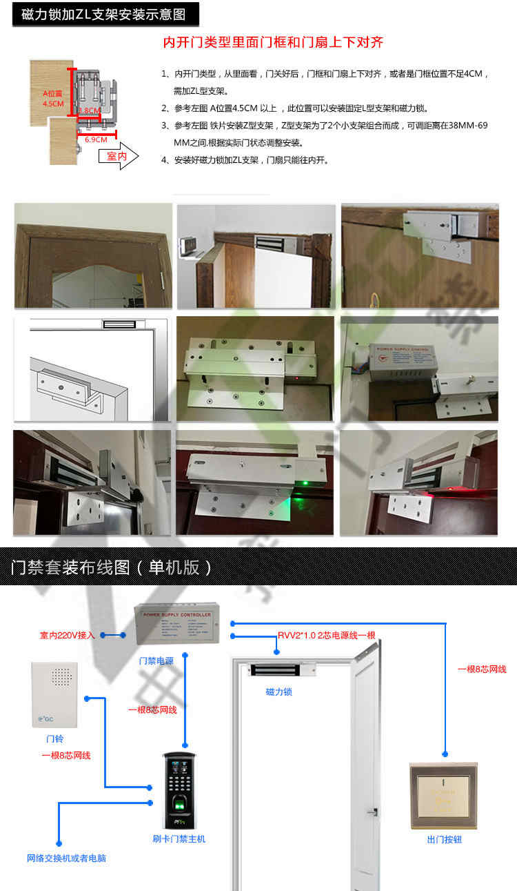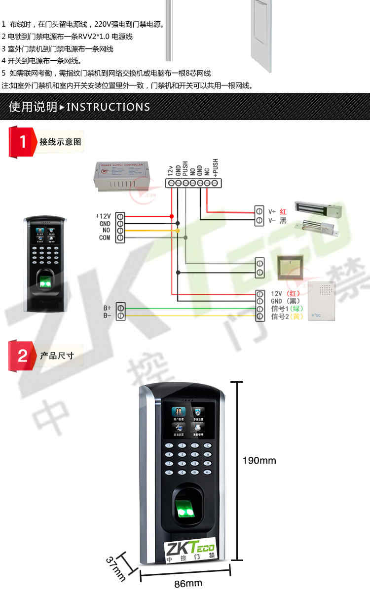F7接線都按照標準辦公室門禁設備要求,可直接兼容原先布線和電鎖、供電電源等,直接將F7換下感應或密碼門禁即可,僅需1小時左右。